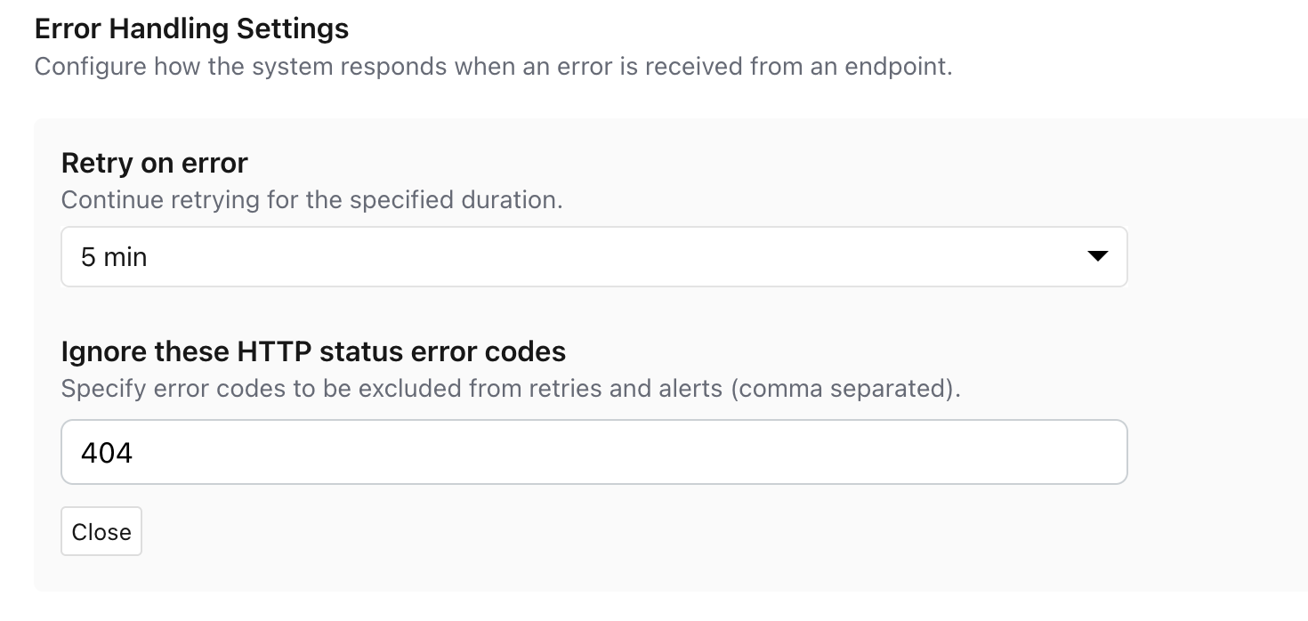- Ignore list: Enter any HTTP status codes that should be excluded from retries and alerts.