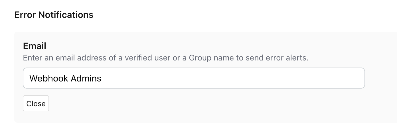 - Enter the email address of a verified user or a Forumbee group name to send error alerts.